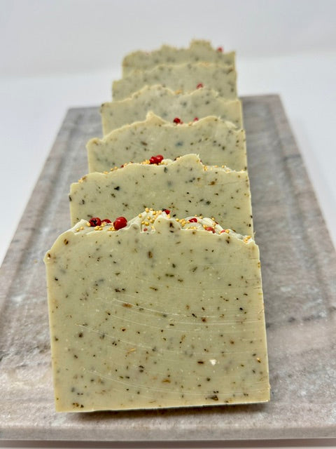 If your soap contains a significant amount of herbs, we recommend placing it in a mesh soap bag (sold separately). This helps prevent the herbs from washing down the drain. The mesh soap bag will also help create a rich lather, extending the life of your soap.
