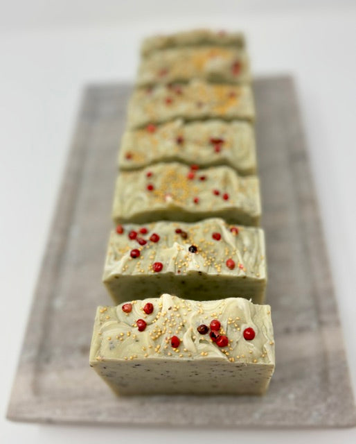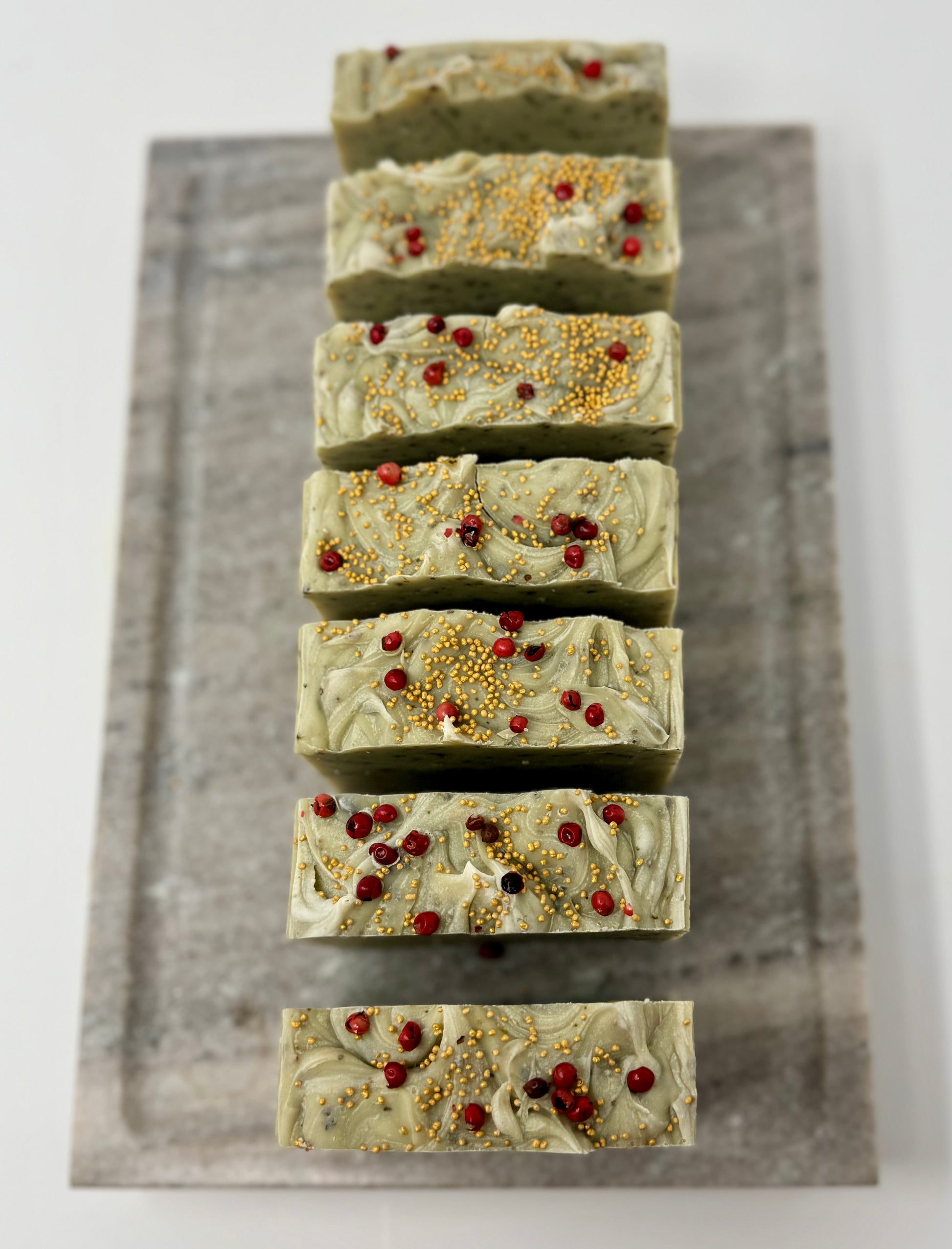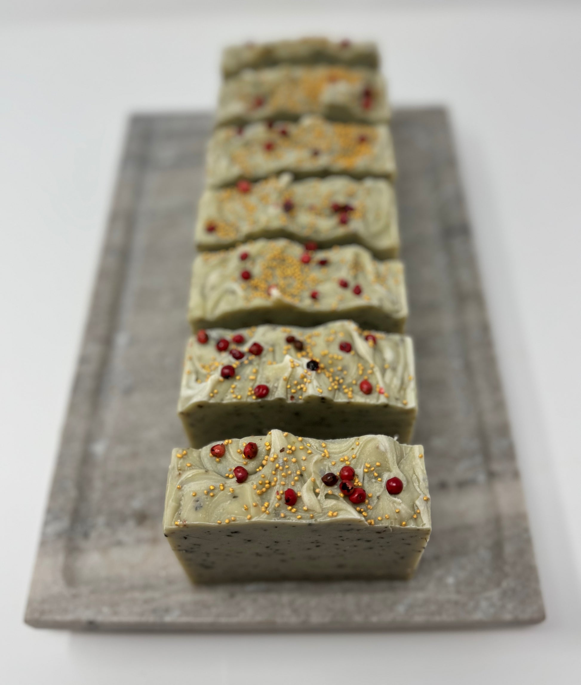 Each bar is handmade in small batches, ensuring quality and attention to detail in every step of the process. The meticulous hand-cutting means that no two bars are exactly alike, resulting in slight variations in size and weight that add to their charm. Additionally, this soap contains no artificial colorants, allowing the natural hues of the ingredients to shine through.