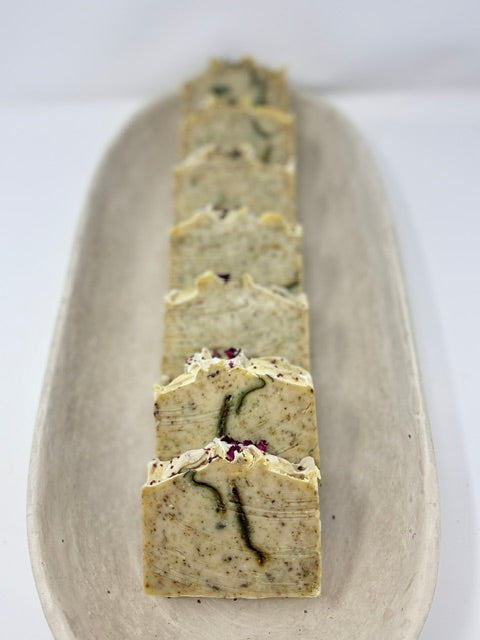 Each bar is handmade in small batches, ensuring quality and attention to detail in every step of the process. The meticulous hand-cutting means that no two bars are exactly alike, resulting in slight variations in size and weight that add to their charm. Additionally, this soap contains no artificial colorants, allowing the natural hues of the ingredients to shine through.