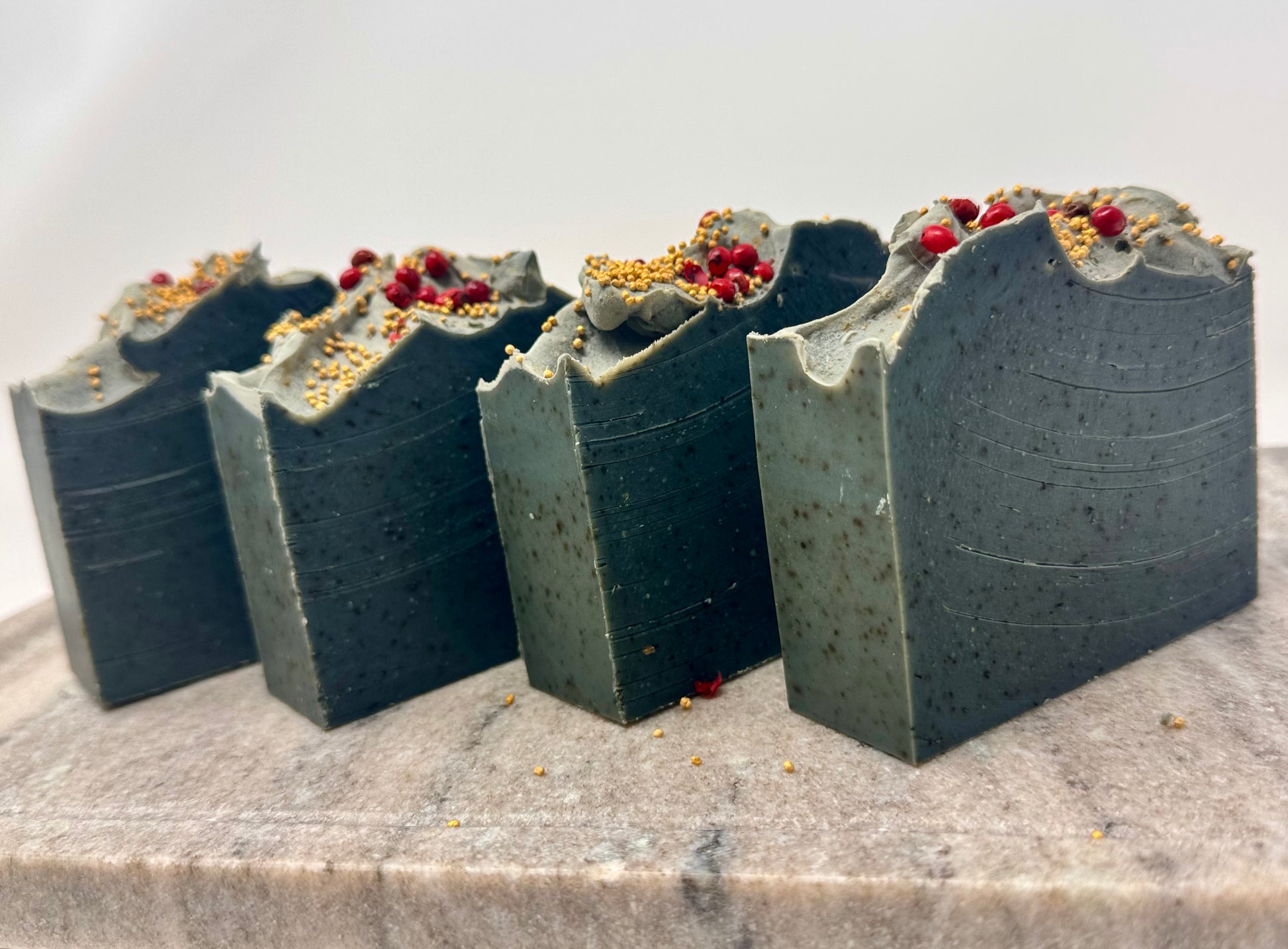 Each bar is handcrafted in small batches to ensure exceptional quality and care at every stage. Carefully cut by hand, no two bars are ever exactly the same — subtle variations in size and weight only enhance their unique character. Made without artificial colorants, each bar proudly displays the natural beauty and hues of its pure ingredients.