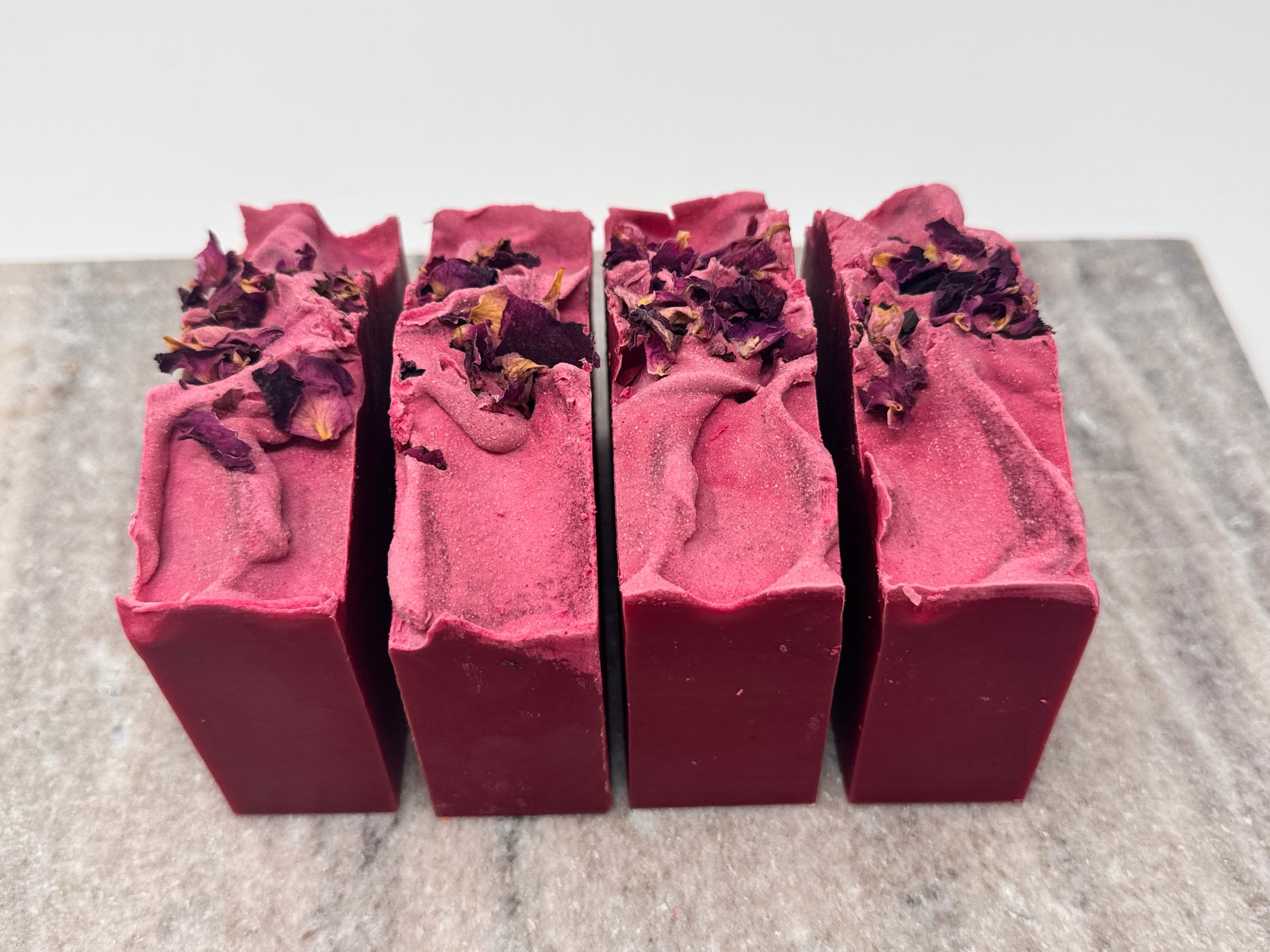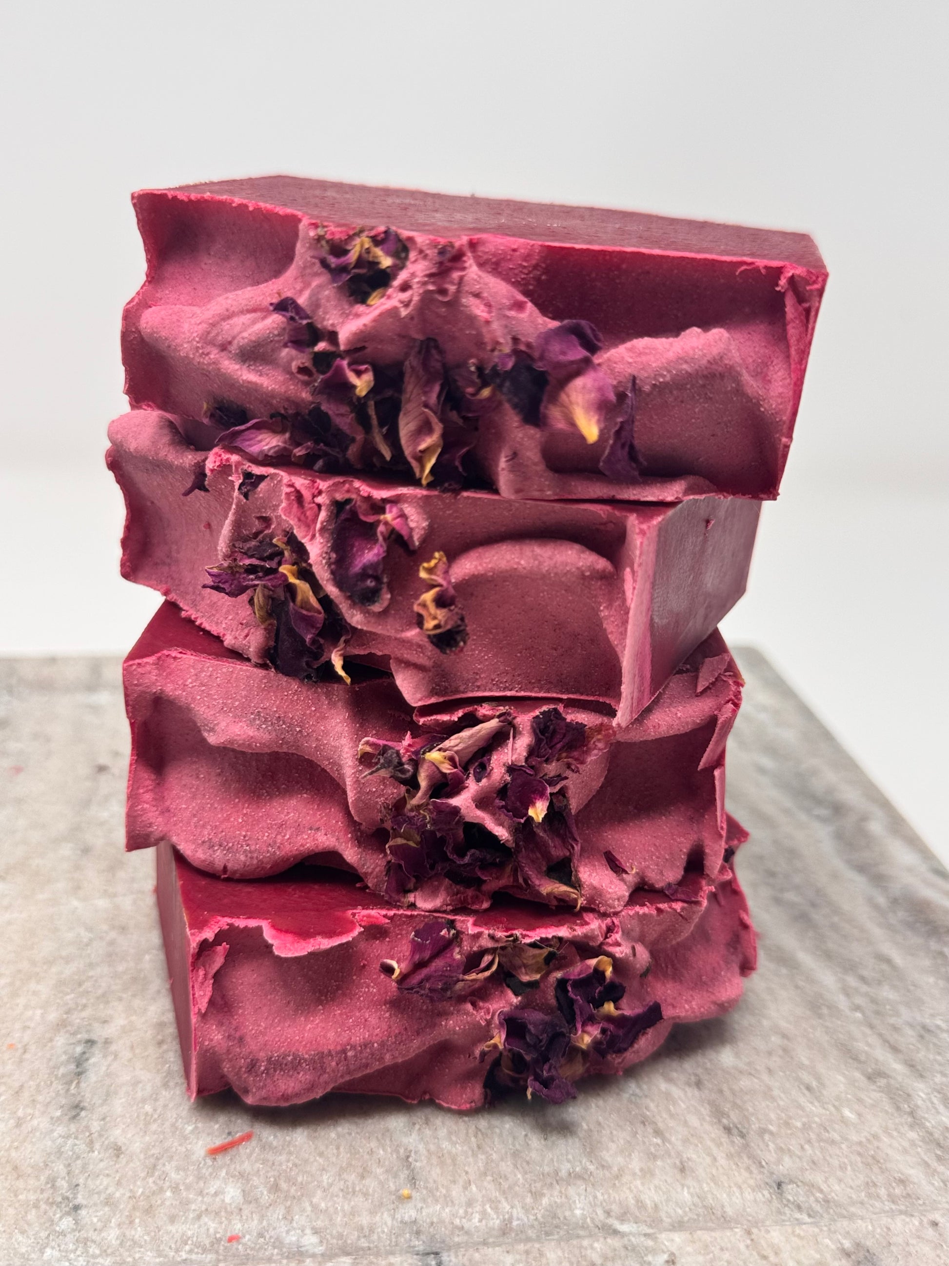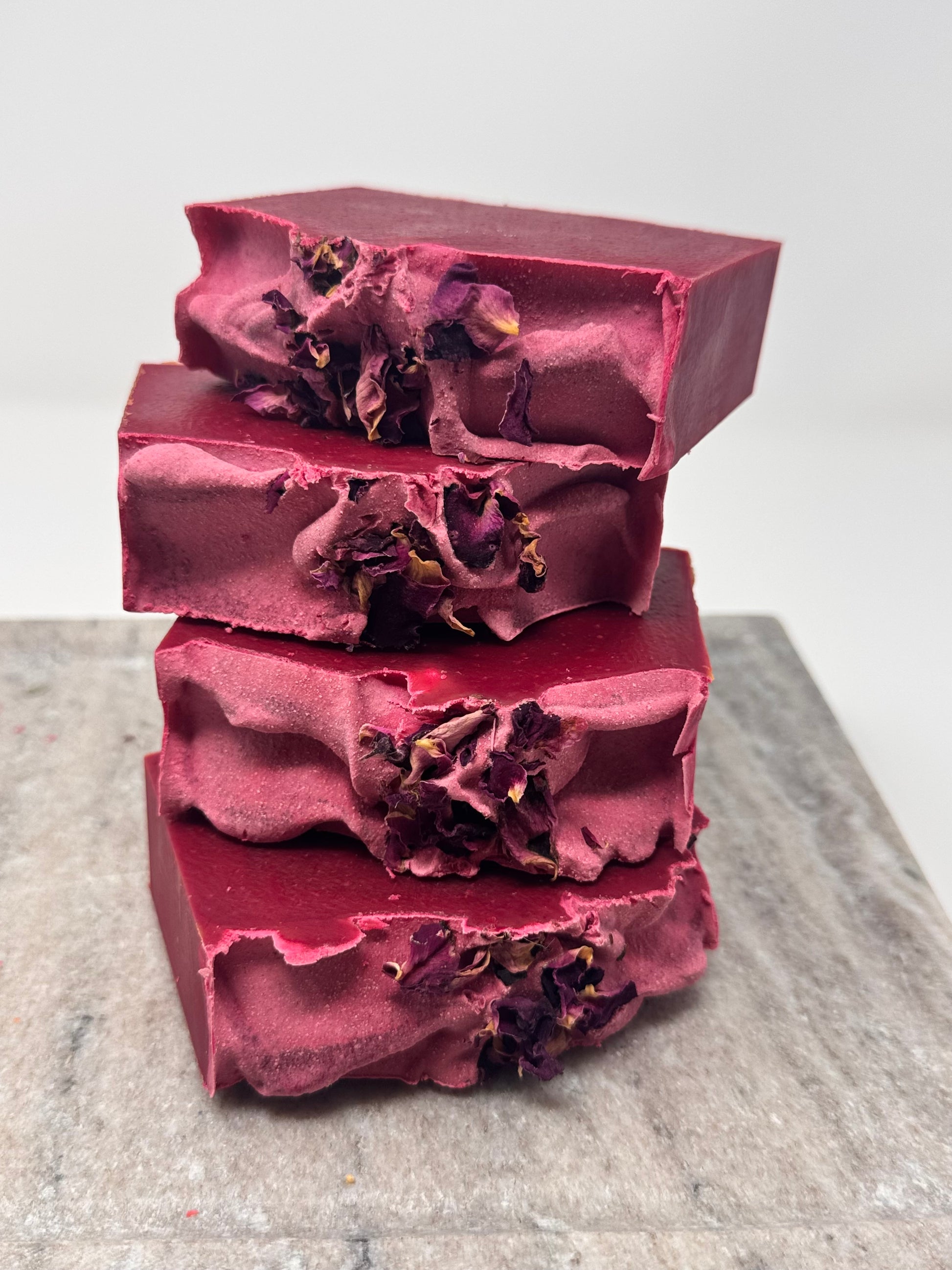 Each bar is handcrafted in small batches to ensure exceptional quality and care at every stage. Carefully cut by hand, no two bars are ever exactly the same — subtle variations in size and weight only enhance their unique character. Made without artificial colorants, each bar proudly displays the natural beauty and hues of its pure ingredients.